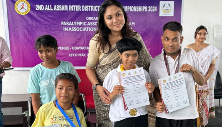 Guwahati, 20 may : Paraltmpic Association of Assam in Association with Udayachal(A Jadav Chandra Bhuyan Memorial Trust) Organised 2nd All Assam Inter District Boccia Championships 2024 at Udayachal Boccia Training Centre at Adabari on 18th May,2024. Chief Patron of Paralympic Association of Assam and Managing Director of Pride East Entertainment Smt.Riniki Bhuyan Sharma was the Chief Guest and Give Away the prizes to the Medal Winners. Paralympic Association of Assam General Secretary Rajib Dey Congratulate the winners.