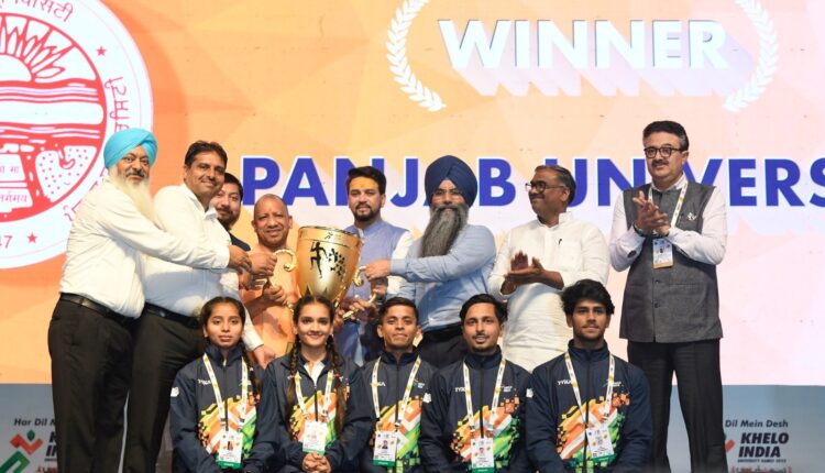 The KIUG 2022 UP, the third edition of India’s biggest multi-sport event at the higher education level, saw over 4000 athletes from over 200 Universities compete in 21 sporting disciplines over 12 competition days. In the end, Panjab University, Chandigarh (PUC) were declared the overall champions with a tally of 26 gold, 17 silver and 26 bronze medals, thereby regaining the mantle they had lost to Jain University in the second edition, after being the champions in the inaugural edition in Odisha. Guru Nanak Dev University, Amritsar (GNDU) whocame second (24 gold, 27 silver,17 bronze) and Jain University, Karnataka (16 gold, 10 silver, 6 bronze) who came third were all presented with glittering winners trophies at the ceremony.