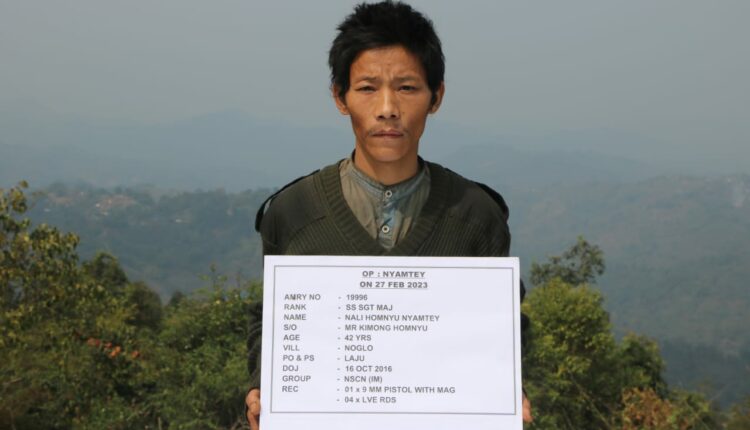 The apprehended cadre of NSCN(IM) has been identified as Nali Homnyu Nyamtey of Noglo village of Tirap district. It is being reported that the militant infiltrated from Myanmar with an intent to carry out extortion and other subversive activities in the villages along the Indo-Myanmar Border. He was also said to be involved in threatening locals and village leaders in Noglo and Laju circle of Tirap district, creating an atmosphere of fear in the area.