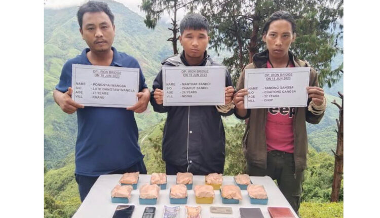 In a significant operation launched by Khonsa battalion of Assam Rifles in conjunction with Longding Police on night of 17 June 2023 and morning of 18 June 23, three individuals were apprehended with a large cache of drugs and cash from border villages of Wakka Circle in Longding district.