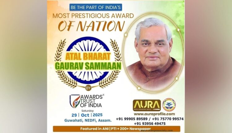 Aura Profile Management & Changes Society is all set to organize the prestigious Atal Bharat Gaurav Sammaan 2025 on Wednesday, October 29, 2025, at NEDFi House, Dispur, Guwahati. The grand event will celebrate excellence, honor distinguished individuals, and pay tribute to notable contributors to society and the nation.