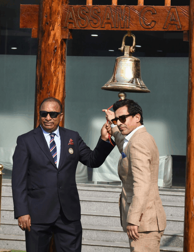 The atmosphere lifted when BCCI President Mithun Manhas and Secretary Devajit Saikia rang the traditional bell to begin play. The sound echoed across the stands, drawing applause from a crowd that understood the significance of what it was witnessing.