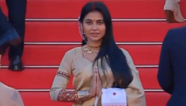 Guwahati: Assam’s renowned actress Aimee Barua walked in to the red carpet of Cannes film festival wearing a muga silk mekhela sador designed by Momita Sharma, adorned with ancient Assamese designs such as Goj Bota and Gam Kharu.