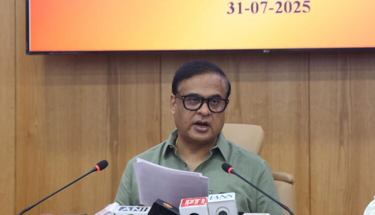 A cabinet meeting held under the Chairmanship of Chief Minister Dr. Himanta Biswa Sarma on July 31, 2025 took the following decisions:
