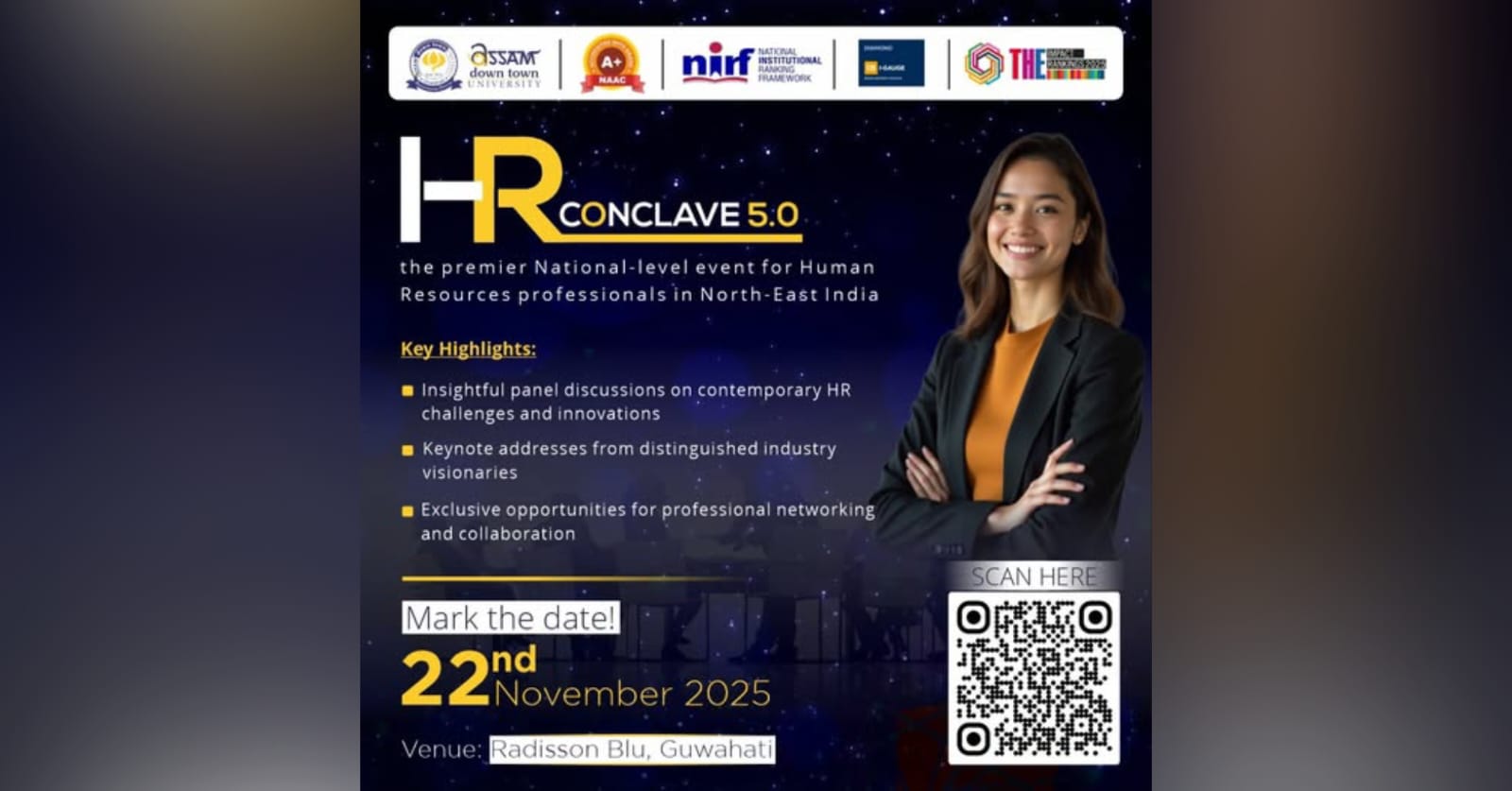 Assam down town University is set to host the National Level HR Conclave 5.0 on 22nd November 2025 at Radisson Blu, Guwahati. Over the last four years, this Conclave has grown into one of the region’s most prestigious platforms for industry dialogue, knowledge exchange, and thought leadership in Human Resource Management.