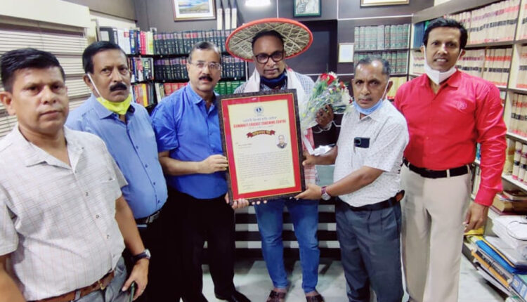 The office bearers of Guwahati Cricket Coaching centre (GCCC) led by Rajib Prakash Baruah, President, Nabab Ali, Secretary cum Coach, Mukubuddin Ahmed Treasurer, Gautam Sharma and Biswajit Choudhury felicitated Devajit Saikia (Lon) at his residence with Gamucha, bouquet, Jaapi, Xorai and Citation on his assumption in the prestigious post of Advocate General, Assam.