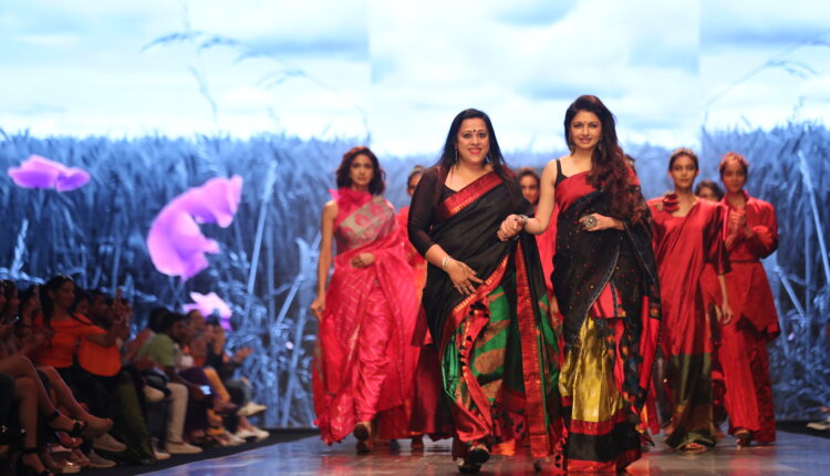 Sanjukta Dutta added, “I am so happy to showcase my new collection at the Lakme Fashion Week. It is an amazing platform to promote the weaves and designs of Assam”, shared Designer Sanjukta. She further added, “It was an ecstatic moment for me to have Bhagyashree walk for me as a showstopper . I have always admired Bhagyashree for her serene elegance and beauty. She is looking an absolute stunner in the Mekhela Chador.