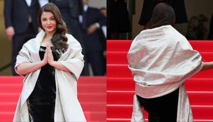 Styled by Allia Al Rufai, Aishwarya Rai wrapped the gown in a pre-constructed shawl-inspired cape trailing on both sides. The highlight of the statement garment was the Sanskrit shloka from the Bhagavad Gita that was inscribed on the back of the cape.