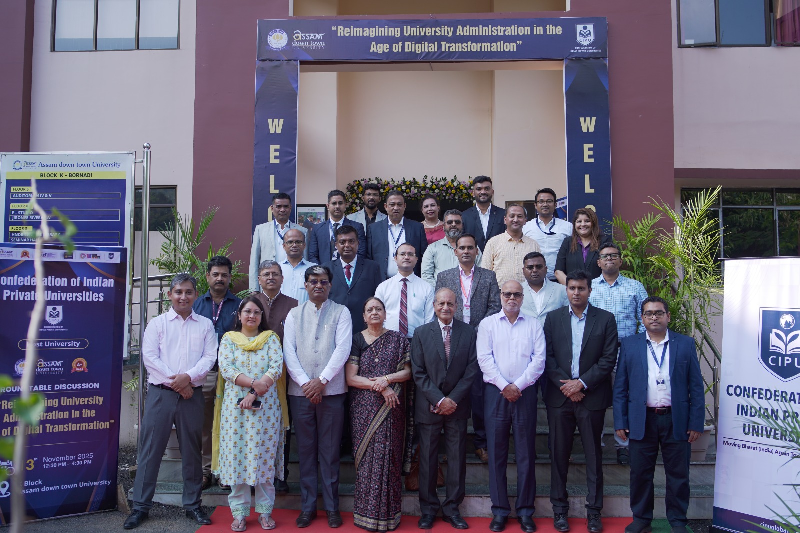 Assam down town University hosted an engaging roundtable discussion on the theme “Reimagining University Administration in the Age of Digital Transformation” at its campus today. The event brought together eminent education leaders, policymakers, and academic administrators to deliberate on the evolving landscape of higher education governance in a digital era.