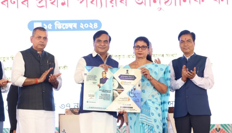 Assam Chief Minister Dr. Himanta Biswa Sarma on Sunday launched the first phase of distributing new ration cards under the National Food Security Act (NFSA) across 49 new legislative assembly constituencies at an event held at the Sarusajai Sports Complex. During the event, the CM distributed ration cards to 14,328 beneficiaries from 4,535 families in the 36 Guwahati Central LAC and to 16,411 beneficiaries from 4,759 families in the 37 Jalukbari LAC.
