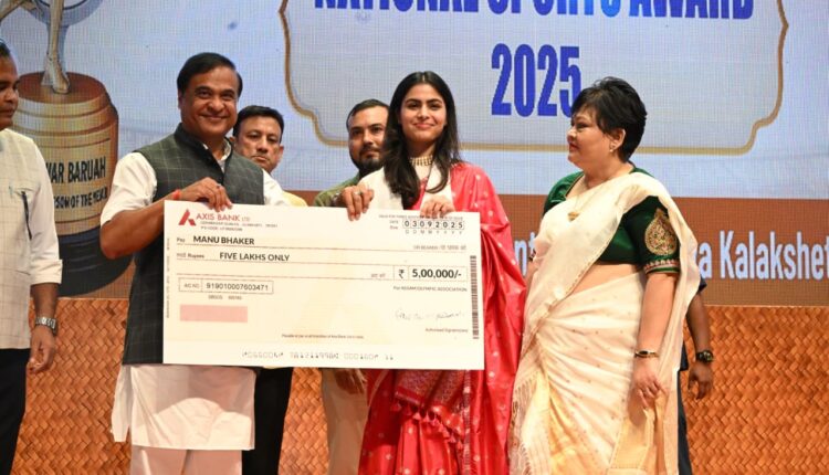 In commemoration of the birthday of Arjun Bhogeswar Baruah who made history by clinching the gold medal in the 800 meters race at the 1966 Asian Games in Bangkok, the Assam Olympic Association on Wednesday organized the Bhogeswar Baruah National Sports Award Ceremony at Srimanta Sankardev Kalakshetra, in presence of Chief Minister Dr. Himanta Biswa Sarma. On the occasion, the Chief Minister Dr. Sarma conferred the Bhogeswar Barua National Best Sportsperson Award on celebrated shooter Manu Bhaker, who brought pride to the nation with two gold medals at the Paris Olympics.