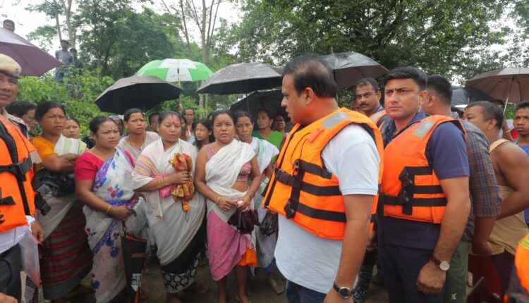 Assam Chief Minister Dr. Himanta Biswa Sarma today visited various flood affected areas of Dibrugarh district and took stock of the situation. The Chief Minister waded through the submerged HS Road and Mahalaya Road in Dibrugarh town and interacted with the flood hit people. Chief Minister Dr. Sarma assured the people to take remedial measures once the flood water recedes. Meanwhile Government would clear the drains to ensure free flow of water, he said.