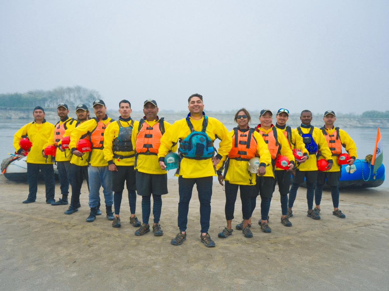 The expedition was executed under the aegis of Ministry of defence , by a highly skilled and motivated team from the National Institute of Mountaineering and Adventure Sports (NIMAS), Dirang, and took 28 days to complete, with 25 days of intense pedaling and 3 days for equipment maintenance. Team started from gelling on 14 Jan & culminated on 10 Feb at Hatsingimari. The team consisted of 9 rafters and 14 Adm & support staff including Capt. Kavitha, Hav. Ganesh Paul, Hav. Pramanik, Hav. Yogesh Patil, Mr. Ramayan Singh, Mr. Vipin Singh, Tosap Rime, Rfn. Sanjeep , Nb Sub Ravi , Hav Rakesh Yadav and 12 more adm & support team members. In Arunachal leg of the expedition, 6 local rafters joined us & in Assam leg , 4 local rafters joined us in this historic journey.