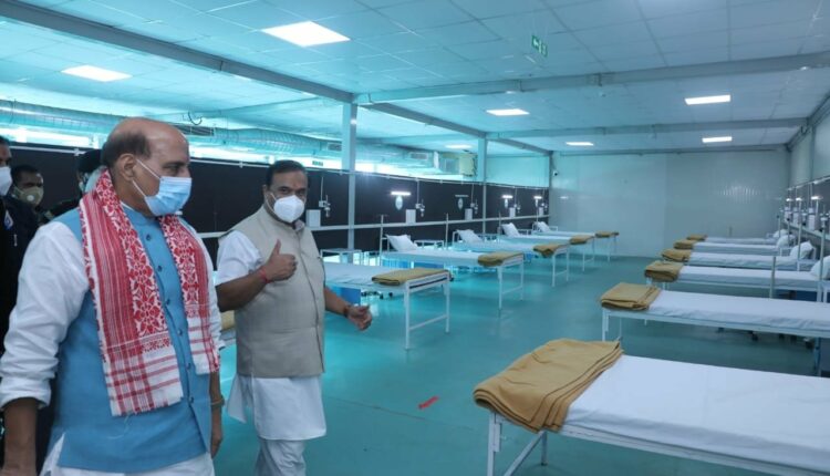Guwahati, June 18 (NKTV): Union Defence Minister Rajnath Singh accompanying Chief Minister Dr. Himanta Biswa Sarma today visited the 300 bedded COVID hospital set up at Sarusajai Sports Complex here today.