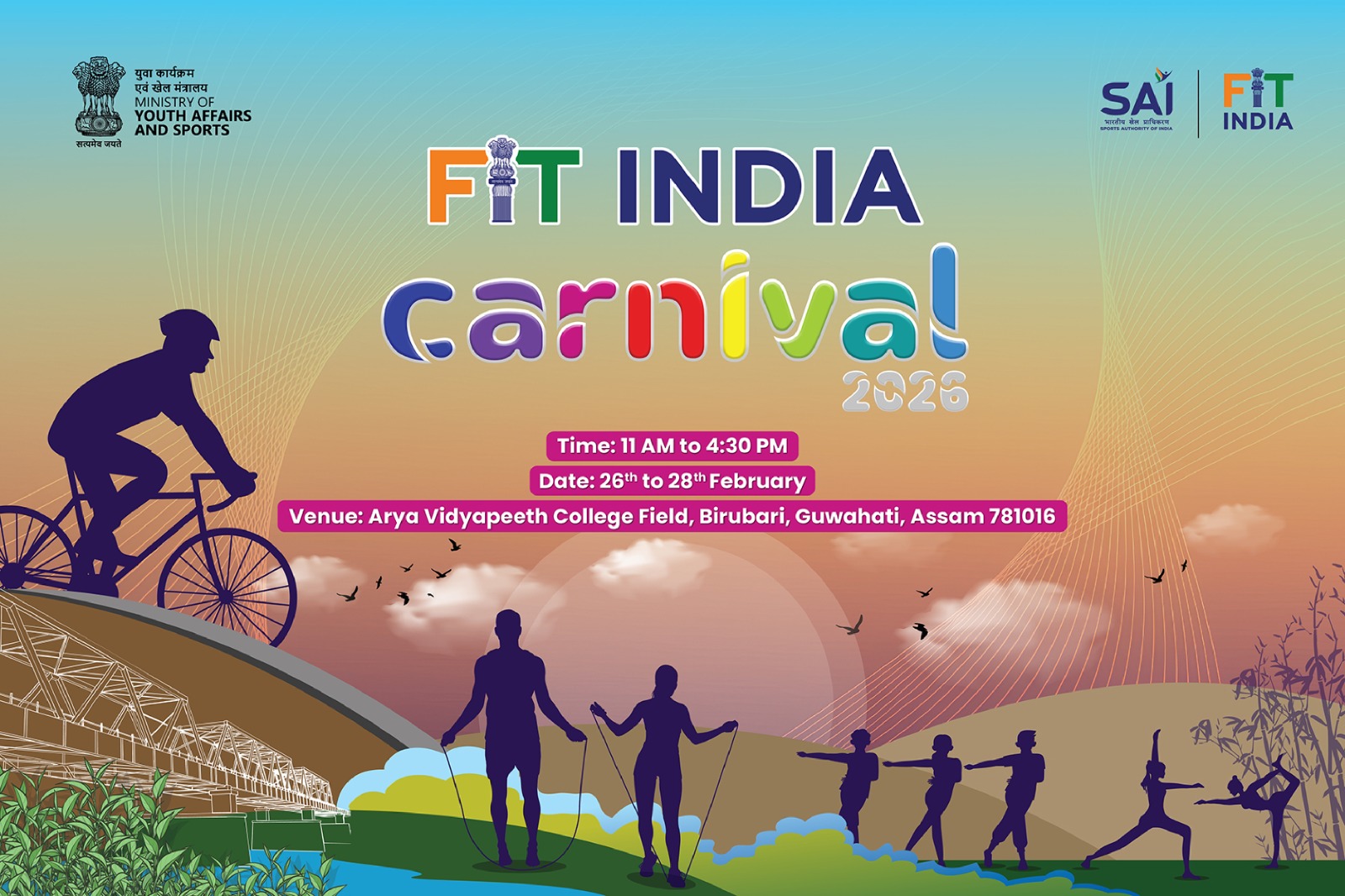 The much-anticipated Fit India Carnival 2026 begins today in Guwahati, bringing a vibrant celebration of health, wellness and culture to the Arya Vidyapith College Ground at Birubari. The three-day event, running from February 26 to 28, is being organised as part of the nationwide Fit India Movement.