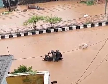 Many two-wheelers and four-wheelers parked on the roads were submerged in the floodwater. Commuters heading to their workplaces early in the morning faced major difficulties navigating through the waterlogged streets.