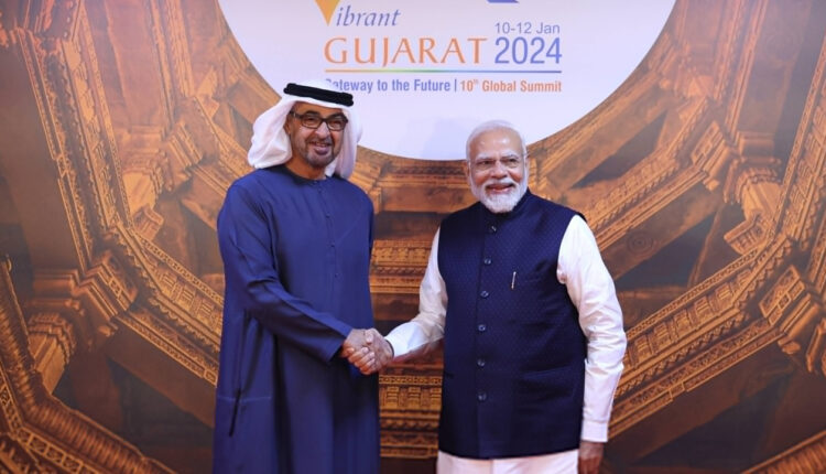 UAE’s President His Highness (H.H.) Sheikh Mohamed bin Zayed Al Nahyan is the chief guest at the Vibrant Gujarat Global Summit 2024, further emphasising the growing cooperation and strengthening relations between the two nations. The Prime Minister of India, Shri Narendra Modi, extended a warm welcome to H.H. Sheikh Mohamed bin Zayed Al Nahyan and remarked that India cherishes his thoughts and efforts to boost India-UAE ties.