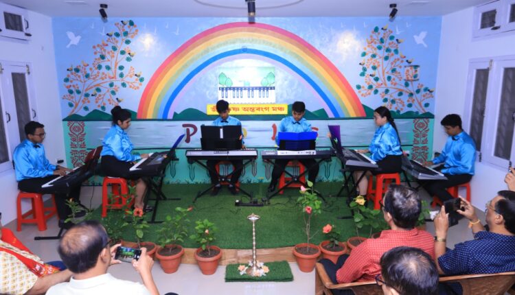 The programme began with the devotional tune ‘Muktito Nispriha Jitu’ by Mahapurush Srimanta Sankardev and Madhabdev, which was converted to staff notation by Kushal Krishna Dev Goswami, and set to music by the students of the institute. It was followed by the lighting of the traditional lamp by Assam’s eminent musician Suryya Goswami. “This compact platform will enormously help in nurturing a lot of talents in the State,” Goswami said after inaugurating the intimate stage, established in the memory of Kushal Krishna Dev Goswami’s late father. This distinctive and appealing platform will be the music talent lab for all the students of Piano Kids. The Jibakrishna intimate stage will include a variety of activities with a focus on enhancing the creativity of the participants.