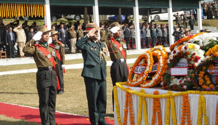 General Officer Commanding in Chief of Eastern Command, Lt Gen RP Kalita, UYSM, AVSM, SM, VSM and Air Officer Commanding in Chief of Eastern Air Command, Air Marshal SP Dharkar, AVSM were the senior most officers from Army and Airforce respectively who were present on the solemn occasion. The Director General Assam Rifles, Lt Gen PC Nair, AVSM,YSM and senior officers from BSF,CRPF, Assam & Meghalaya Police and the IB also laid wreaths.