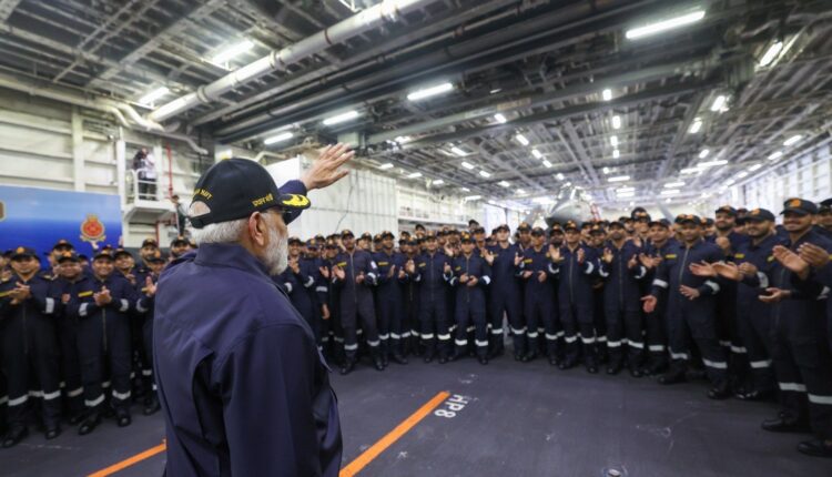 Prime Minister Narendra Modi continued his tradition of celebrating Diwali with armed forces personnel on Monday, visiting the INS Vikrant off the coast of Goa and Karwar.