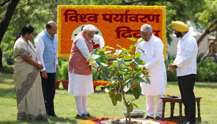 In a post on X, PM Modi said, “Today, on #WorldEnvironmentDay, we strengthened the #EkPedMaaKeNaam initiative with a special tree plantation drive. I planted a sapling at the Bhagwan Mahavir Vanasthali Park in Delhi. This is also a part of our effort to reforest the Aravalli range—the Aravalli Green Wall project.”