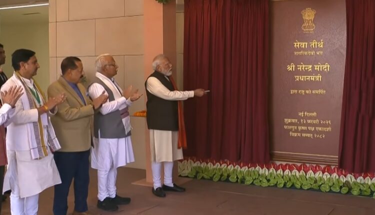 Prime Minister Narendra Modi today unveiled the name of the building complex Seva Teerth in the National Capital.