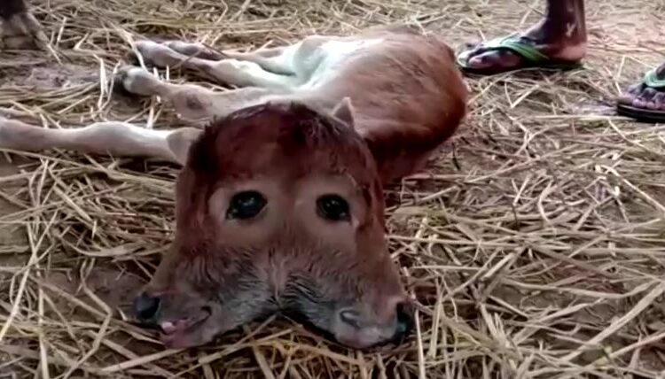A calf with two heads, an extremely rare condition, was recently born in Tripura’s Gomati district. The calf which was born on Saturday at a farmer’s house The female calf has a medical condition called ‘Polycephaly’: the animal has fused skulls, two pairs of eyes, two mouths and two ears.