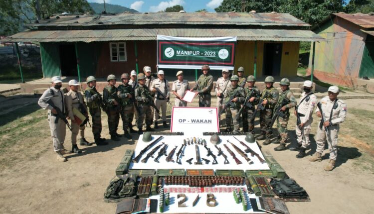 Joint Columns of Security Forces comprising of Indian Army, Manipur Police, CRPF, BSF and IRB have been actively involved in combing operations in general area Sagolmang of Imphal East in Manipur. In the last one month, the security forces have conducted three major successful operations in Khamenlok-Gwalthabi, Wakan and Shantipur ridges which have resulted in the recovery of 18 Automatic Weapons, 1085 Bombs, 14 Improvised Mortars / Rocket Launchers, 06 Rifles / Pistols, 01 Mortar, 530 assorted ammunition and 132 other war-like stores. All the recovered weapons, ammunition and stores were handed over to Police as per laid down procedure on 19 Oct 2023.